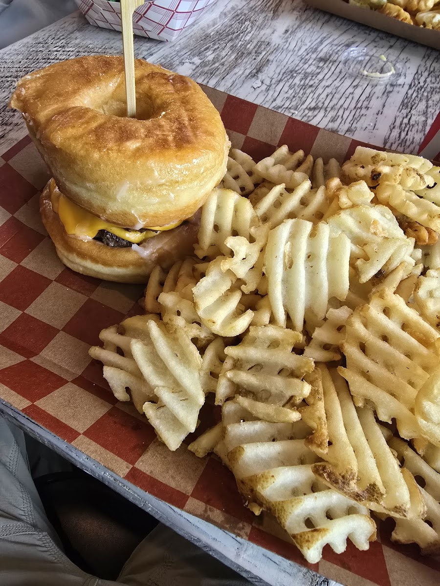 The menu here leans into classic diner favorites, but the star is clearly this donut-bun burger that balances salty and sweet in a way that feels almost rebellious. Instead of a traditional bun, glazed donuts cradle a juicy beef patty, melted cheese, and crispy bacon. I watched the cook assemble one during a slower afternoon shift, carefully toasting the donuts just enough to keep them from collapsing. That small step matters. According to culinary research shared by the Culinary Institute of America, managing texture contrast is one of the most important factors in perceived flavor satisfaction, and this sandwich nails it.